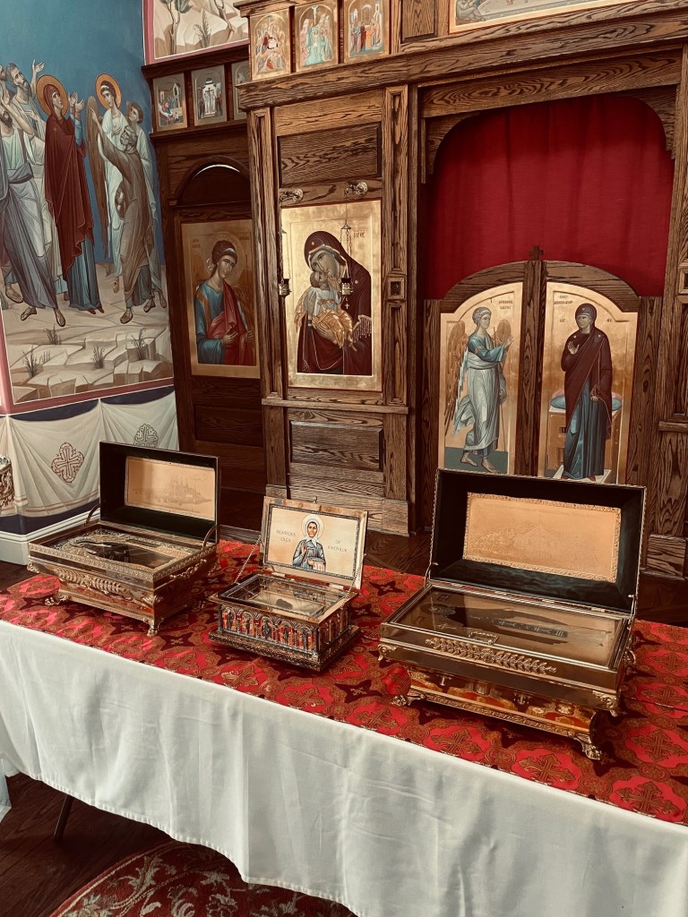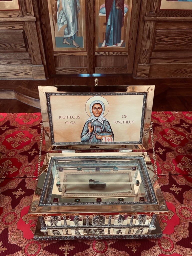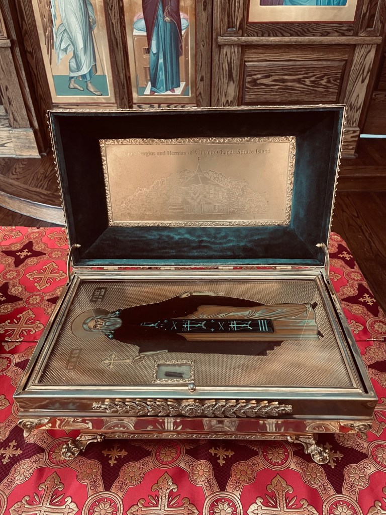Relics of Sts. Herman, Tikhon, and Olga of Alaska.